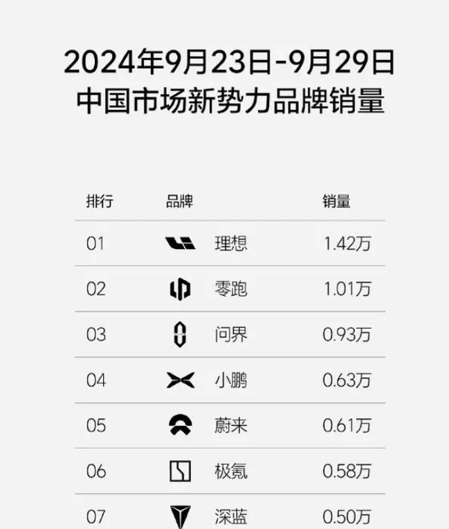 自今年起,理想和问界一直在争夺国内新能源汽车市场的头把交椅,却未曾料到,零跑汽车已经悄然超越。在9月份的最后一周,零跑以1.01万辆的销量超越了问界的0.93万辆,排名第二,紧随理想之后。