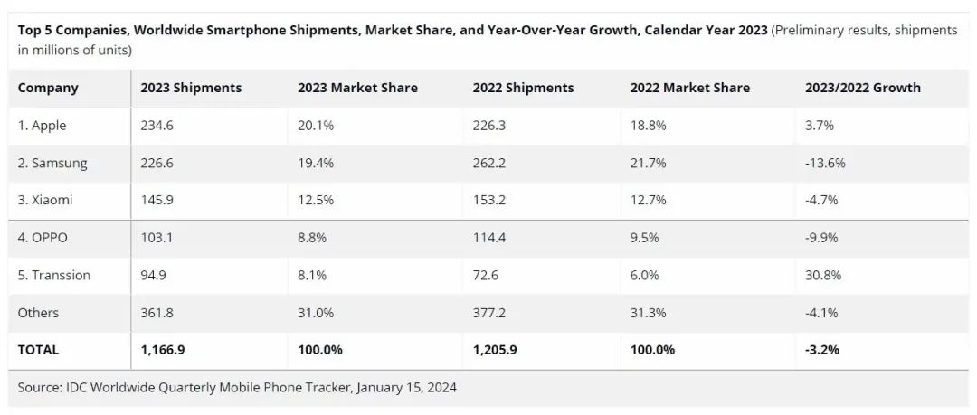 其中,传音2023年一年,在非洲卖了接近1亿部(9490万)。