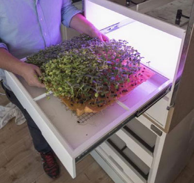 德国公司Agrilution目前正在研发一个室内自动化蔬菜园项目。这台名为plantCube的机器,拥有冰箱大小、内置不同抽拉式单元及LED,可以模拟不同气候环境,实现室内植物种植体验。