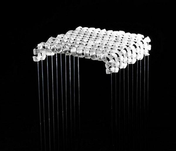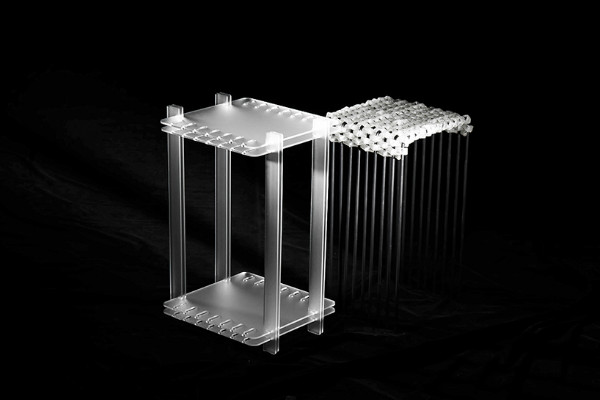 这三位设计师分别是 liao, an-kai 和 dai, cheng-zhe,他们将工业设计与手工设计想结合,设计出 knitmold 椅子。椅子总共有 3 款样式,分别是 Knit、plumknot 和 bridge。设计师为了简化打造这些复杂产品的方法,还设计了一系列机器以及夹具,从而增加了液槽尺寸与生产速度。