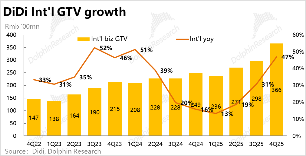 具体来看,滴滴国内业务的adj.EBITA利润为26.2亿,同比增长20%,增速不算低。利润占GTV的比重为3%。虽然环比角度看持续在走低,但同比仍是提升了0.2pct。整体来看,较25年前两个季度的利润释放高峰是有明显回落的,但利润率走高的趋势未变。