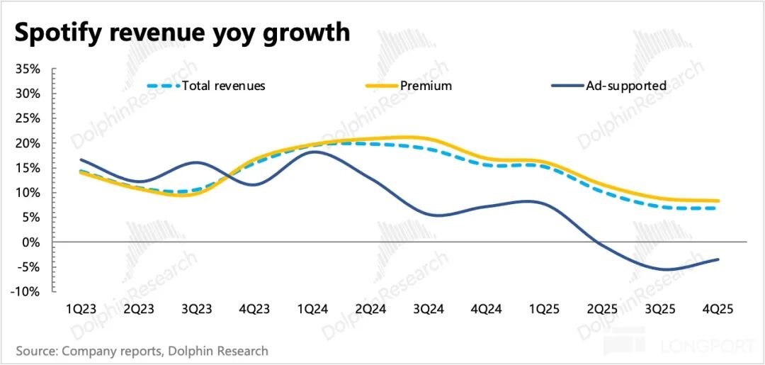 (1)北美涨价动作慢、幅度小:在 2025 年陆续与三大 labels 签了新协议之后,眼见今年起 Spotify 的版税成本有所增加(Discovery Mode 对等折扣降低、高价套餐分成比例更高、最低保证金上涨等)。