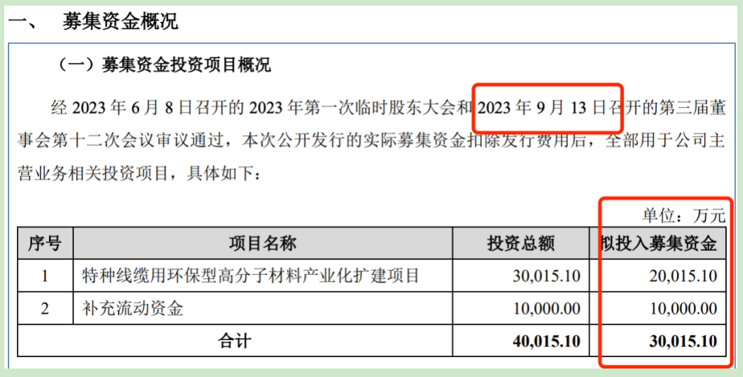 具体来看,特种线缆用环保型高分子材料产业化扩建项目项目总投资为3亿元,原计划募集资金为2亿元,而目前大幅缩减之后计划募集资金仅仅只剩下了8410万元,相当于原计划募集资金缩水了近58%左右。而补充流动资金项目从原先的1亿元减少至目前的4000万元,直接缩水60%。