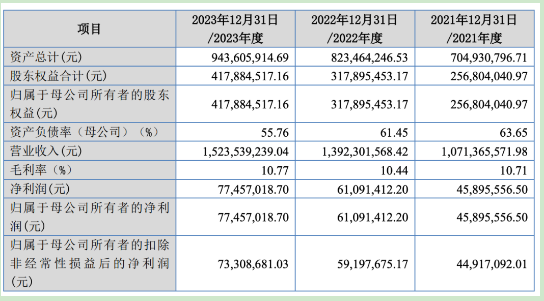 根据招股书,太湖远大在2021年至2023年实现营业收入分别为10.71亿元、13.92亿元和15.24亿元,同期净利润分别为4589.56万元、6109.14万元和7745.7万元。报告期内,公司经营活动产生的现金流量净额连续三年为负,分别为-2.07亿元、-1.51亿元和-1.66亿元。