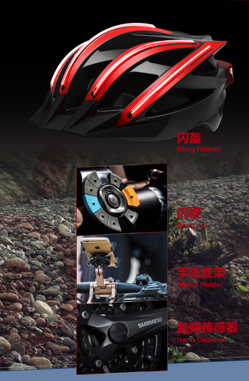 Livall智能骑行装备由四部分构成:闪盔、闪控、手机支架和踏频传感器组成,此外还有一个APP应用:来啊。