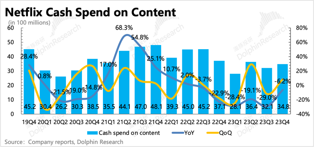 上季度因为罢工影响,部分内容投资暂时停摆,因此内容支出加速下滑,内容资产规模也环比下滑。但四季度已经出现了一些变化。