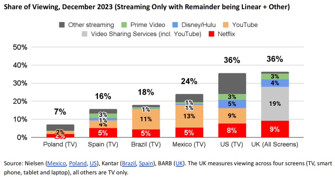 截至2023年底,奈飞总用户数超过了2.6亿,但这次管理层再次强调了中长期目标5亿的用户规模(不含中国、俄罗斯),认为奈飞在各地区的电视收视份额还不足10%,未来有望进一步替代传统渠道。