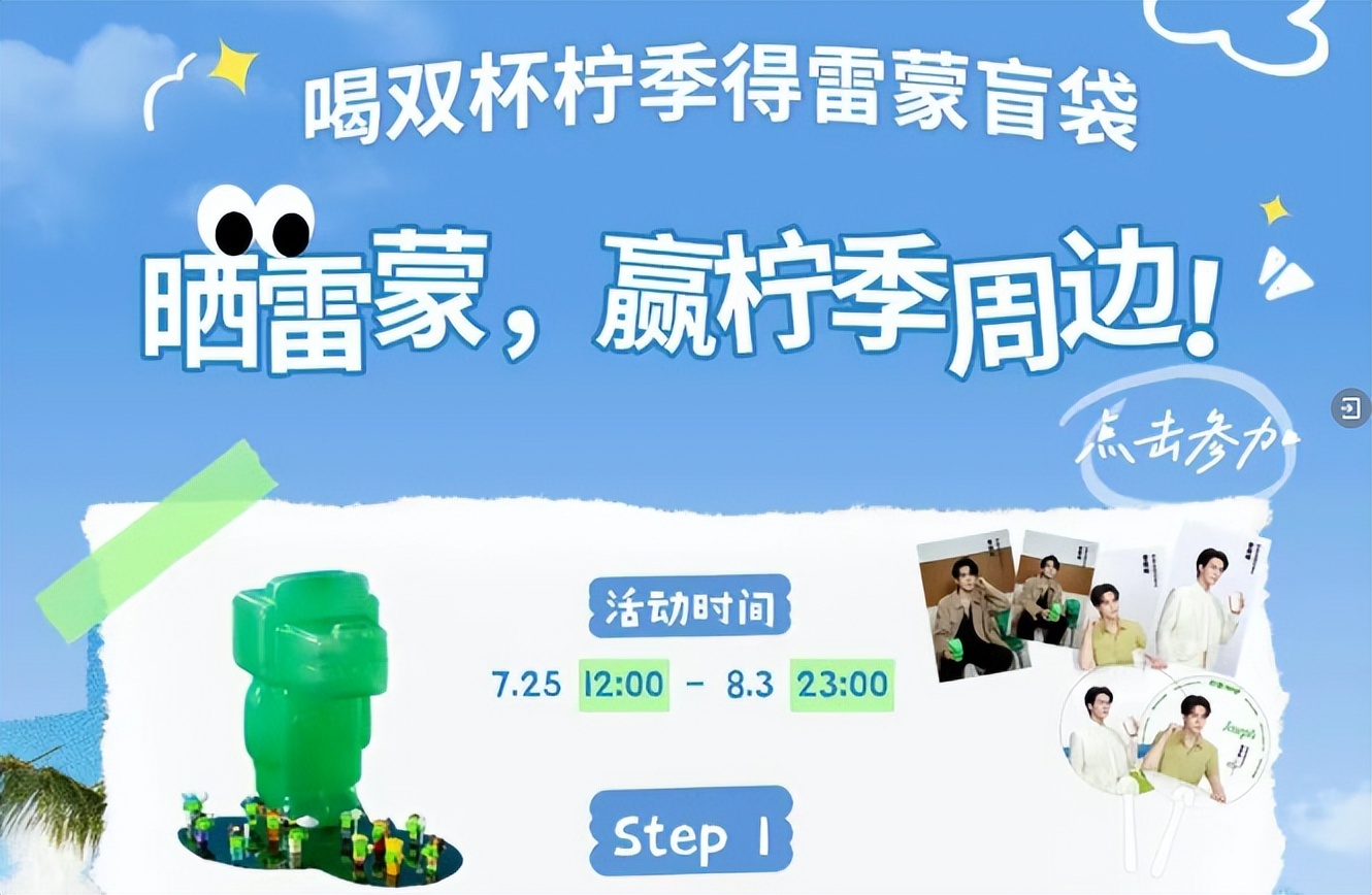 柠季就在旺季推出了“喝双杯柠季得雷蒙盲袋”的活动,用小成本换高频互动,以轻营销实现销售转化。相比单纯折扣,盲盒能带来更多场景化的体验感,也更容易在社交平台形成裂变传播。据品牌方披露,在柠季品牌活动“柠宝节”期间,雷蒙盲袋系列拉动年轻用户新增226.7万。