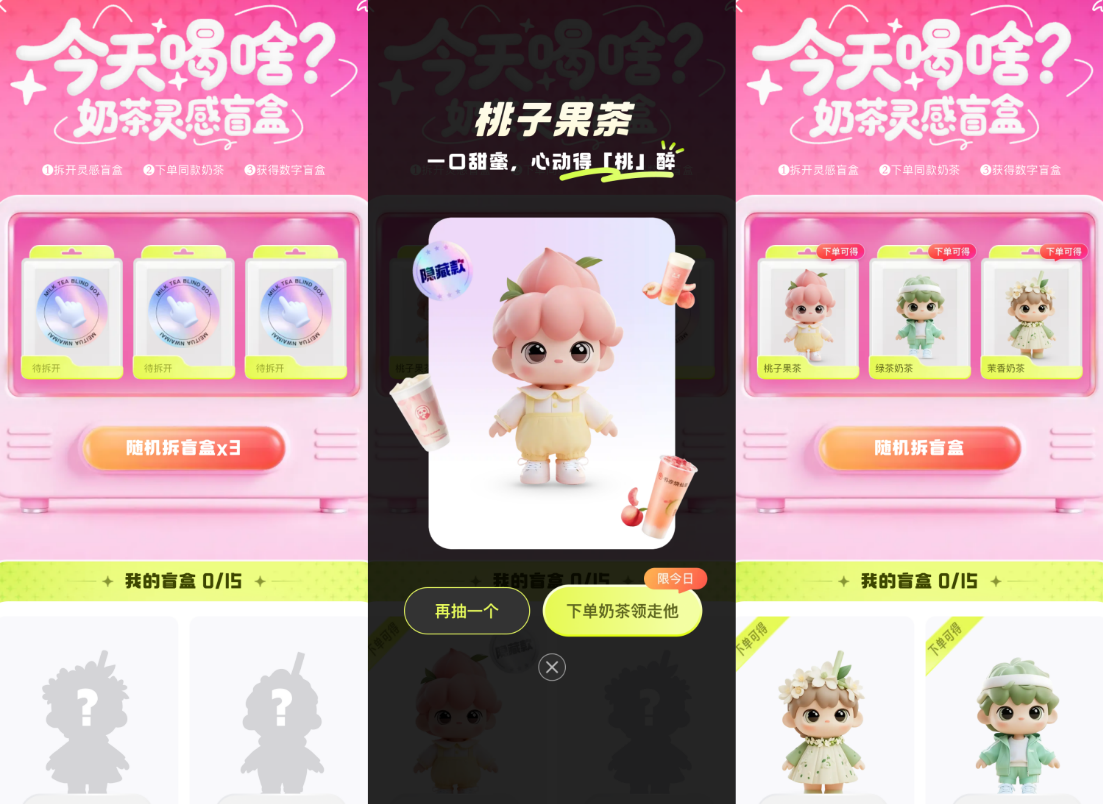 而盲盒与茶饮的结合,却指向了另一种可能。在“情绪消费”成为主导趋势的当下,消费者不再只是为功能付费,更在为体验买单。奶茶的甜配上盲盒的未知,就是一种“快乐翻倍”的消费模式,有望提升用户粘性和复购意愿,让品牌在消费者心智中占据更稳固的位置。