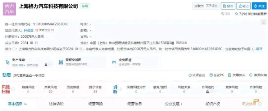 上海格力汽车,注册资本高达2000万元,位于上海自由贸易试验区临港新片区。业务范围广泛,从工业互联网数据服务到智能机器人研发等,格力的触角已经延伸至多个高科技领域。此外,公司还涉足制冷、空调设备的销售与制造,以及汽车零部件的研发。