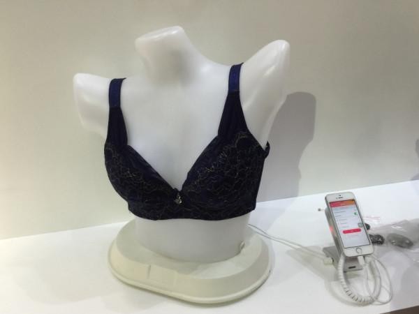 第一个是智能胸罩,是一家为于广州的厂商博冠 Bosma 所展出,当我走过他们家摊位,墙上大大的“Smart Bra”让我停了下来。当时我脑中浮现的情境大概是“侦测胸型、呼吸、心跳,甚至是安全性的防狼功能”。不过工作人员和我说明了一下使用情境,原来和我想的不一样。Bosma 是制作智能胸罩里的传感器,这个传感器可以侦测腋下的体温,然后同步至手机,这样使用者就不用每天都特别测量和记录基础体温。