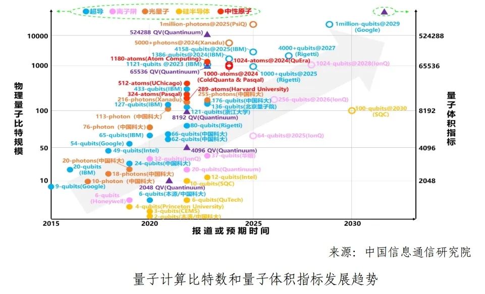 中国信通院发布的《量子计算发展态势研究报告(2023 年)》显示,目前的量子计算实现路线,暂时没有出现具有综合优势的路线,发展路线都有各自的优势和不足。