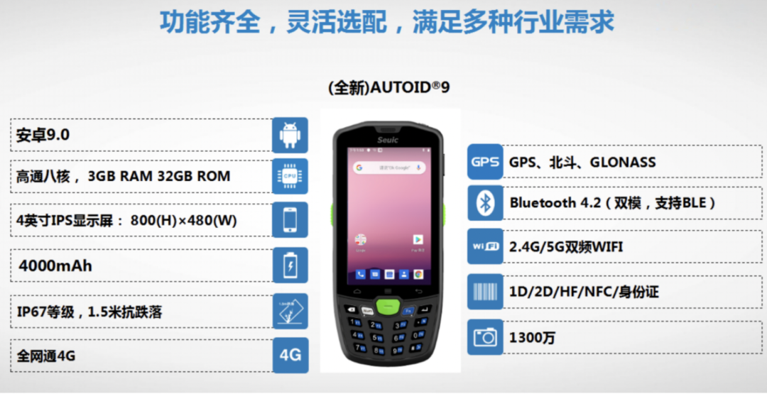 东集表示:“为了满足数据传输和连接的可靠性要求,‘AUTOID 9’手持终端采用骁龙450移动平台,具有超强的Wi-Fi漫游能力,可将普通设备在Wi-Fi环境下的最远连接距离从100-200米提升至300米,需要部署的AP数量也因此而降低,在各个不规范的AP之间也可以做到无缝漫游,具有较高的信号灵敏度,能适应各种复杂的网络环境,保证物流现场设备数据稳定传输。”