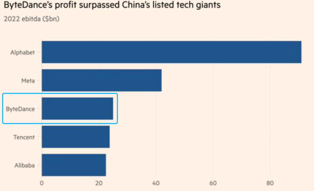 这也意味着字节跳动的毛利润在2022年首次超过老牌科技巨头腾讯和阿里,后两家公司2022年的EBITDA分别为239亿美元和225亿美元。