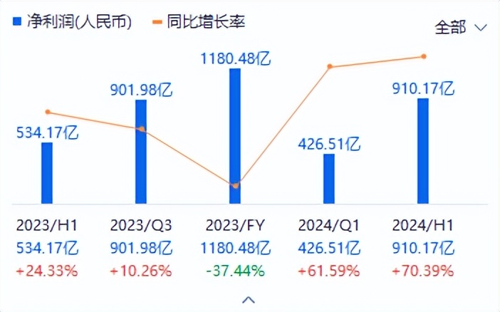 而从2024年上半年来看,腾讯的净利润更是达到了910.17亿元,同比增长超70%。至少,单论盈利能力,腾讯仍然是中国互联网企业中最强的那个。