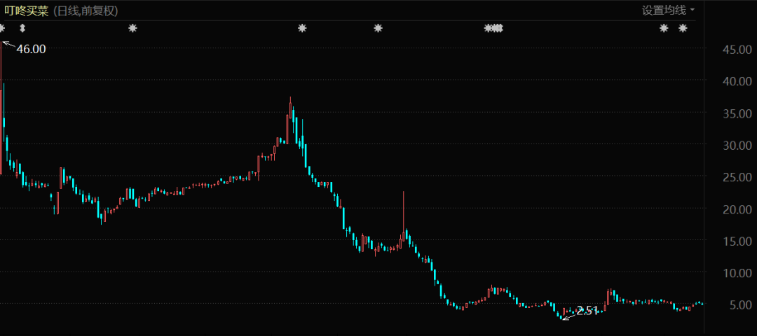 如果时光可以定格在这天,那软银当日的获益将超过50%。但美好总是短暂,从此叮咚买菜陷入了和其他互联网股一样的曲线,当年跌去近三成。2022年至今,又跌去近七成。