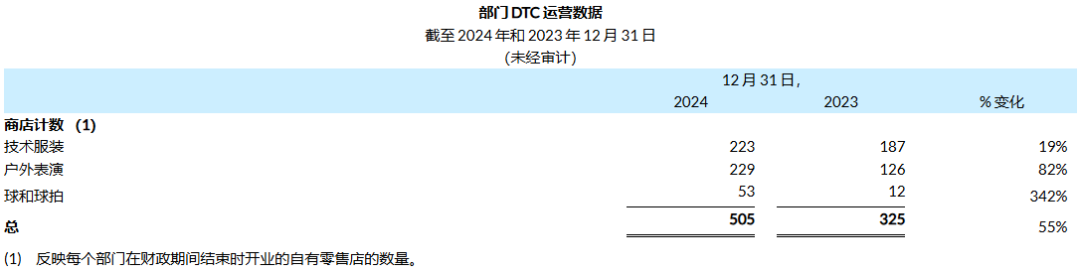 一方面体现在渠道扩张上,尤其是DTC部分。报告显示,2024年,萨洛蒙所在部门门店同比猛增82%至229家,增速远超始祖鸟所在部门19%,数量上也超过其223家。