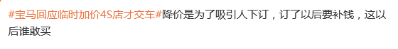 这次,宝马宣布退出价格战之后,外界还在感叹宝马的“骨气”时,这份“好感”还没焐热,就被某些宝马4S店这些行为,全给败光了。甚至有网友辣评“吃相真难看”……