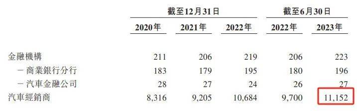 截至2023年6月30日,公司与11152家汽车经销商达成合作,较2020年的8316家增长34.10%。