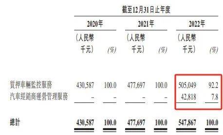 从收入来看,长久股份业务主要分为质押车辆监控服务以及汽车经销商运营管理服务两部分。其中,质押车辆监控服务是公司核心业务。2022年,长久股份该业务实现收入5.05亿元,占公司收入比例为92.2%。