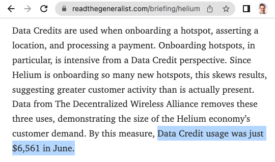 该文章中披露的数据的确令人惊讶,Helium在更名为Nova Labs之后,这家公司在今年6月从数据服务中获得的营收仅为大约6500美元。