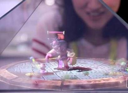 值得一提的是,在今年的CES展览上,H+便展示了看家本领:让玩家在iTouch在玩多人3D游戏,实时的3D影像画面便展现在Holus的玻璃箱内。另外,在最近的一起视频采访中,Adhia也实际操作展示了Holus的奇幻3D表演。他通过iTouch远程操控了“站在Holus内部”的一名穿着航天服、手拿激光剑盾的虚拟女战士角色。