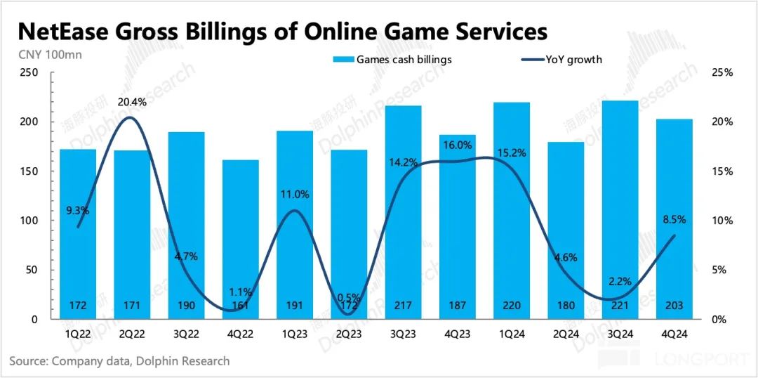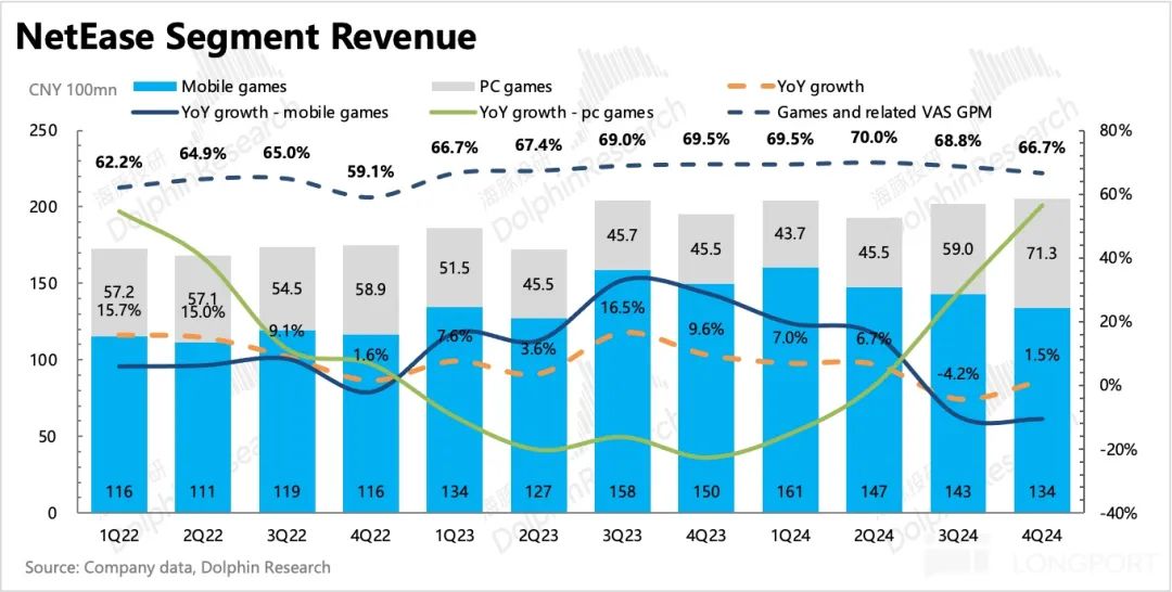 海豚君盘了下目前重点 pipeline,2025 年可能还得靠端游抗增长大旗,手游至少上半年还是有压力,得看《燕云十六声》的继续破圈和长线运营,下半年基数下来了,同时也可以期待下《七日世界》、《代号无限大》等新游的表现。