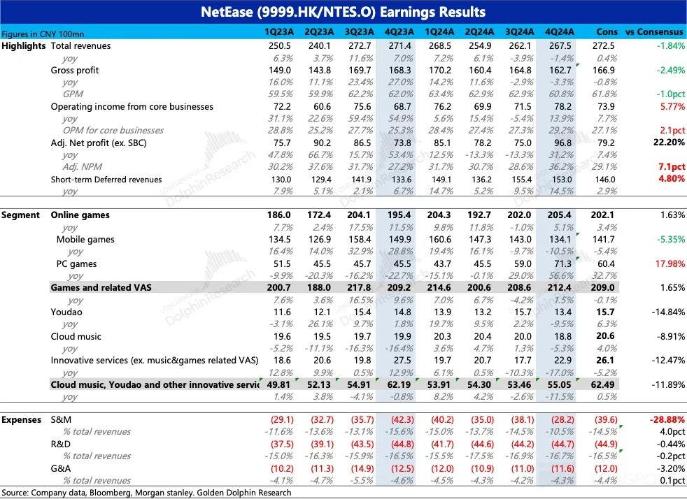 网易于北京时间 2 月 20 日港股盘后发布了 2024 年四季度财报,再次说明了,无论二级市场口碑咋样,产品驱动型公司,最后都还要拿产品和业绩说话。