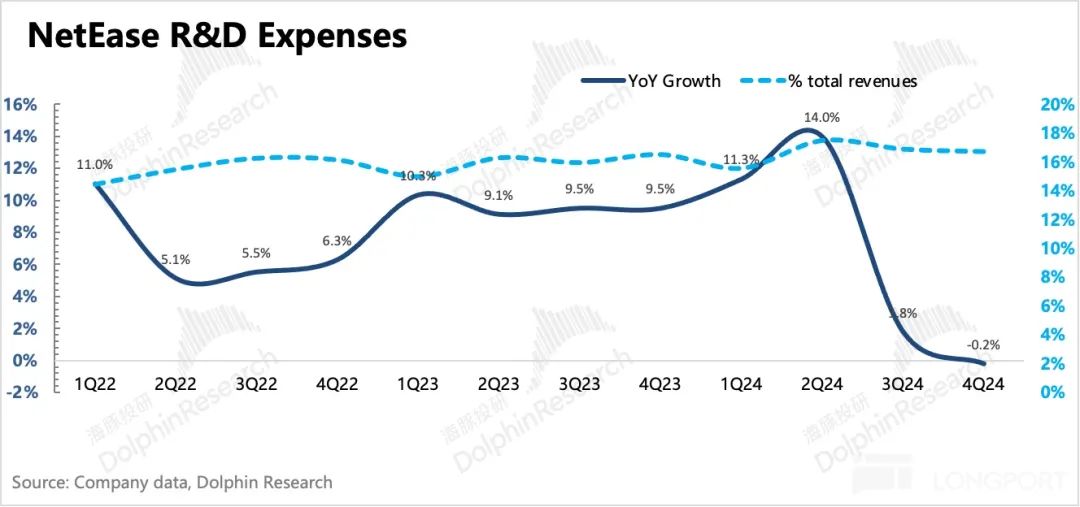 这次销售费用比市场预期整整低了 10 多亿。公司的说法是创新性营销工具和方法带来营销效率提升,也就是说这样的优化,其中可能存在一些持续性;不过海豚君还是很难理解突然就这么骤降了,去年底确实有看到多款常青游戏营销预算暂停的消息,不知道是否与前段时间网易营销发行线的内部反腐有关。