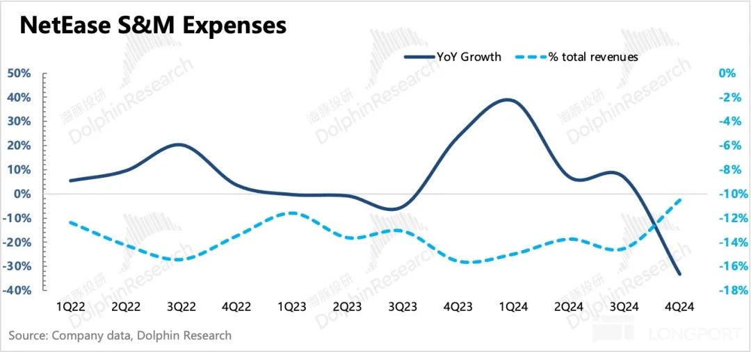 公司的说法是创新性营销工具和方法带来营销效率提升,也就是说这样的优化,其中可能存在一些持续性;不过海豚君还是很难理解突然就这么骤降了,去年底确实有看到多款常青游戏营销预算暂停的消息,不知道是否与前段时间网易营销发行线的内部反腐有关。