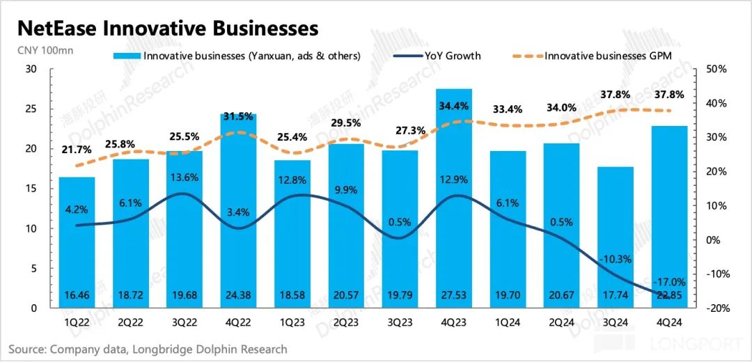 四季度云音乐、有道以及严选等其他创新收入,均处于同比下滑,部分盈利在改善,说明集团对这些业务的当下战略是,做利润先于扩张。