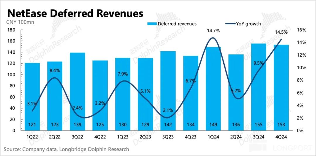 递延收入来看,Q4 几款新端游的增量流水有望继续托底短期增长,但能否带来超预期的增长,上半年主要关键就是看《燕云十六声》手游表现。