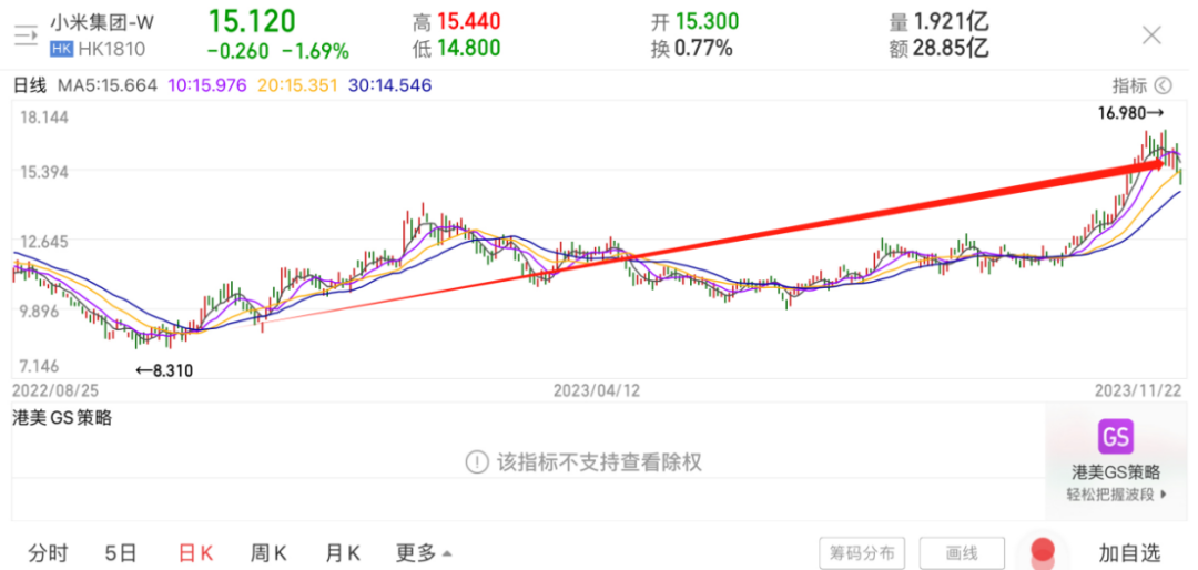 截至11月22日收盘,小米10月以来涨幅达26.2%。较今年年初涨幅更是一度超过50%,远远跑赢大盘指数。
