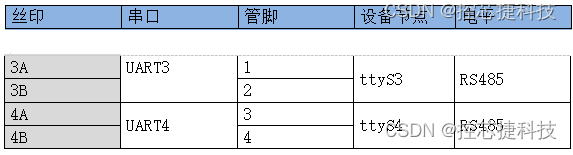 UART1、UART2、UART3、UART4这4路均经过RS232电平转换,做过防静电处理。UART4,1路经过RS485;RS485总线最多可悬挂设备的理论值为256个收发器,且空焊120R终端电阻,建议用户根据环境实际测试,确保通讯正常。注:理论值受限原因与使用环境、通信线材有关。