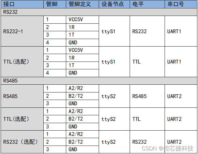 注:UART2 串口是调试接口,在启动时会有打印信息出现,开机后可作为普通串口使用