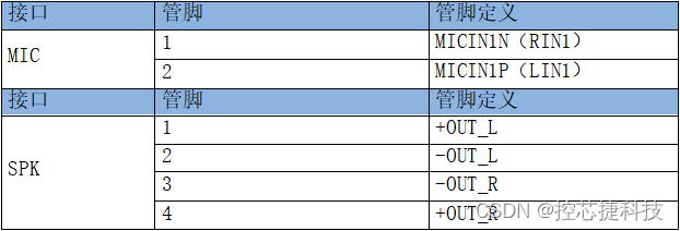 MIC 为麦克风接口,SPK 为扬声器接口。SPK 接口是一个双声道 8Ω/3W 的功放电路。注 意:MIC 的三角头标识为接口 1 号引脚。接口为内置。喇叭已标配。