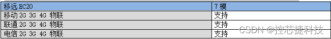 如果需要使用 4G 功能,YR07JK可以选配 4G 模块。只需要将 SIM 卡放到卡槽中,然后断电重启即可使用 4G功能。SIM的卡座是在板子的顶层,方向以SIM卡托为准。底板卡座是带卡托SIM卡座,我们配带使用的是移远的4G模块,支持全网通,具体如下表。