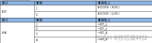MIC为麦克风接口,SPK为扬声器接口。SPK接口是一个双声道8Ω/3W的功放电路。注意:MIC的三角头标识为接口1号引脚。