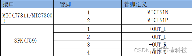 HPO 为耳机接口(J59) ,MIC 为麦克风接口(J7311) ,SPK 为扬声器接口(MIC7300)。SPK 接口是一 个双声道 8Ω/3W 的功放电路。