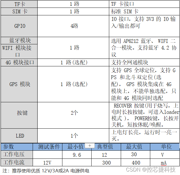 GPIO 接口,只支持 3V3 信号引脚。电压 3.3V ,输入/输出都可;GPIO1、GPIO2为上拉,GPIO3、GPIO4为下拉。作 为输出时电压 3.3V 电流驱动能力 4mA ,作为输入时外围设备电压接入不得高于 3.3V ;大于此电压使用,会烧坏 CPU ,导致板卡无法使用。