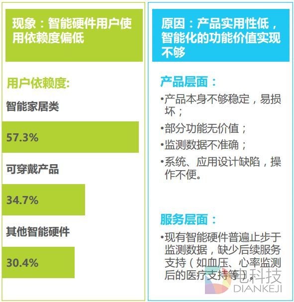 这类产品依托于用户熟悉的应用场景,落地性很强,因此能获得较高的用户粘性。报告显示,家居类产品是目前所有智能硬件品类中用户依赖度最高的。由此看到,传统企业向智能化转型拥有原始的优质切入点。