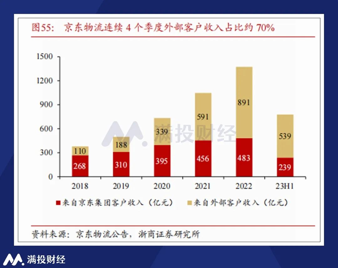 来自外部客户收入逐渐取代京东集团内部收入,成为京东物流的主要增量,这也是京东物流独立上市之后,向综合性物流集团转变过程中比较健康的发展路径,而此前对跨越速运和德邦物流收购后,资源和业务互补下对京东物流的转型就增益不小。