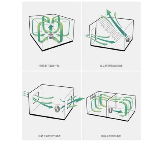 这款产品主要特点是可以加快房间内的空气流动速度。这样无论是在空调房间还是日常环境下,都能起到让房间温度均衡、防潮除湿的效果,也可以在一定程度上减少因为温度分布均匀导致的空调病。
