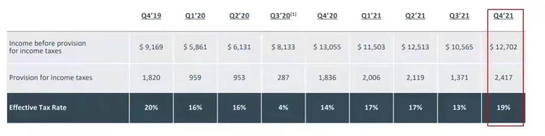 Meta的有效税率从2021年Q3的13%上升至19%,环比提升6个百分点,同比2020年Q4的14%提升5个百分点。