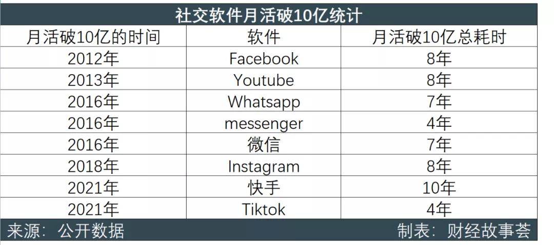现如今,Tiktok全球月活已过10亿,耗时仅为4年,而Facebook达到这一数量,花费了8年时间。
