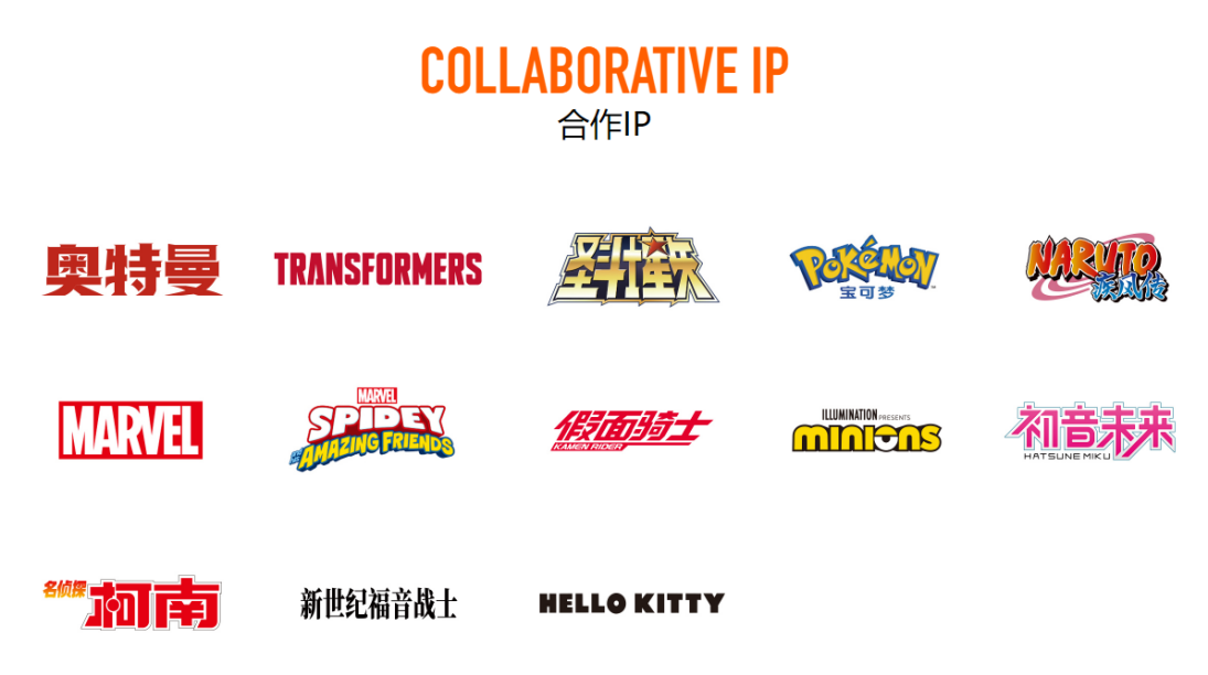 根据招股书,截至2024年3月31日,布鲁可共有391款在售SKU。在IP资源上,布鲁可已成功推出2个自有IP,包括儿童益智类的百变布鲁可和中国传统文化主题的英雄无限。同时,布鲁可已获得奥特曼、变形金刚、火影忍者、小黄人、宝可梦、假面骑士、名侦探柯南等30多个知名IP的授权。