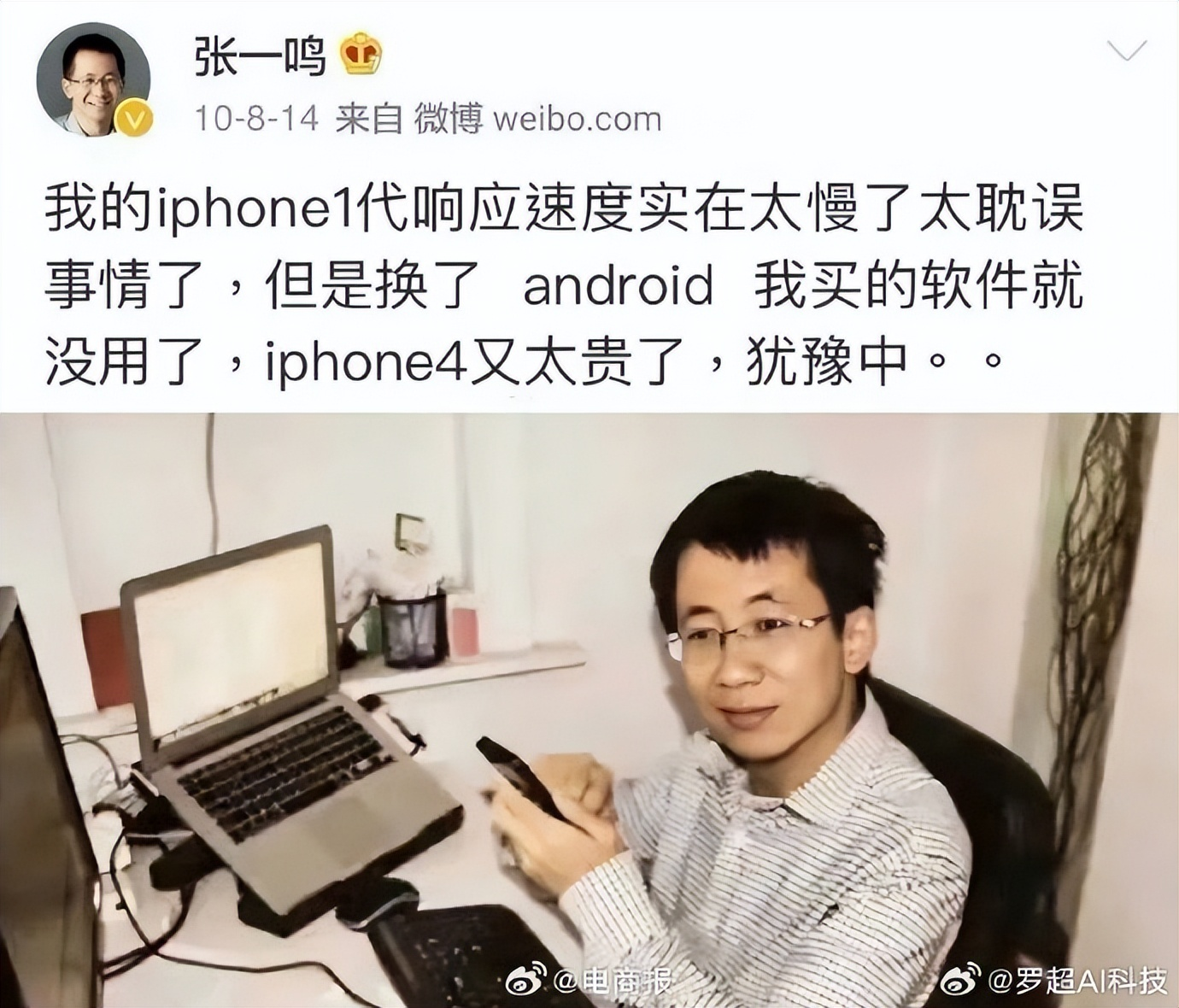 在那条广泛传播的微博中,14年前,张一鸣还在纠结要不要换“太贵”的iPhone 4。