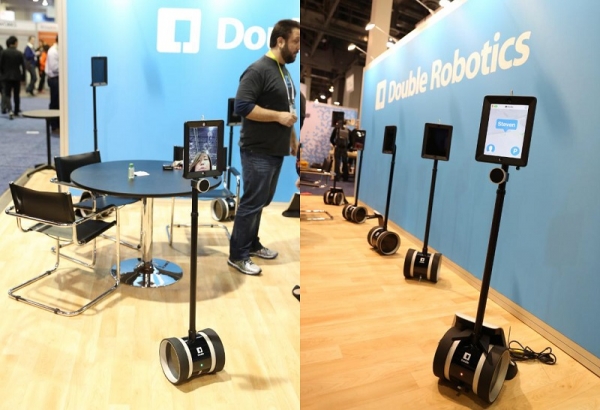 服务机器人,上面是一个ipad,通过一根可升降的支杆与底座连接,底座看上去是电动平衡车。通过ipad可以将家里的画面回传,这样你就能看到家里的东西。同时支杆降低则能与儿童对话,升高则可与成人交流。在其电力过低的时候,还会自己去充电。