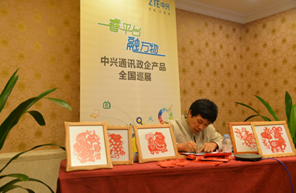 民间艺术家现场表演剪纸