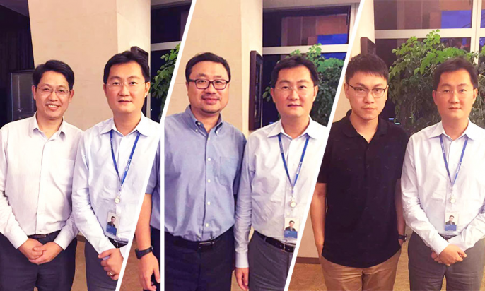 11月23日,微信朋友圈出现了一个刷屏小高潮:腾讯老大马化腾用相近的姿势、在同一个地方和三个不同的男人进行了合影(应该不只三个合影,是小编只搜集到这三个),我们在朋友圈看到了开头三张照片。